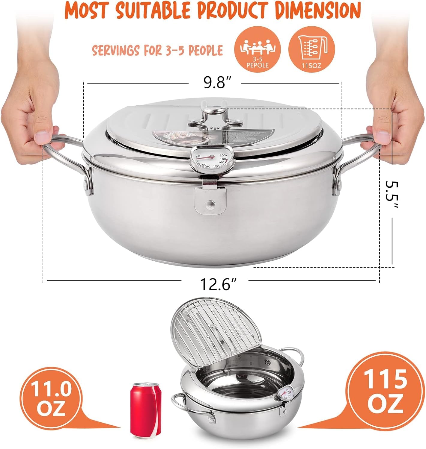 Deep Fryer Pot,Oxydrily Japanese Tempura Deep Fryer Stainless Steel Frying Pot With Thermometer