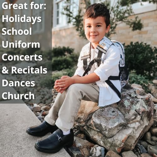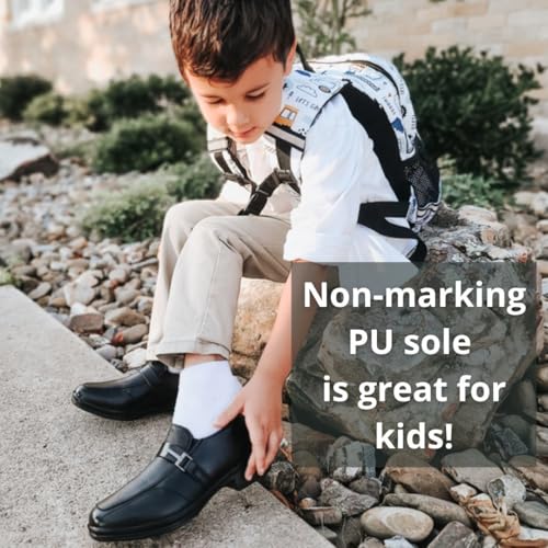 - STYLE: The rich synthetic leather upper has a burnished toe (luggage only) and a classic metal buckle embellishment for a classy look great for formal events like Church, Easter, Bar Mitzvah’s, weddings, proms and more. The classic slip-on moc-toe design features extra style with an embossed vamp. This style will keep your child looking classy and sophisticated.