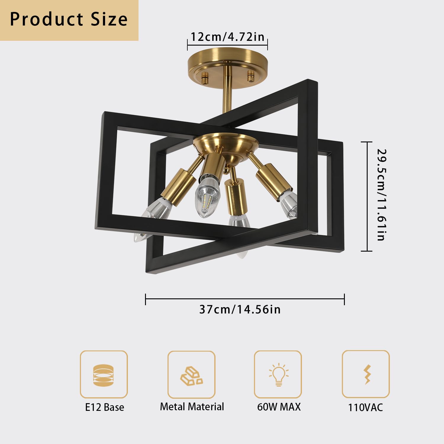 - 💡【Industrial Design】-DELIPOP Semi Flush Mount Ceiling Light adopts an industrial element design. Gold with black metal frame looks more luxurious and advanced. It complements the décor of any home, creating a space full of character and texture.