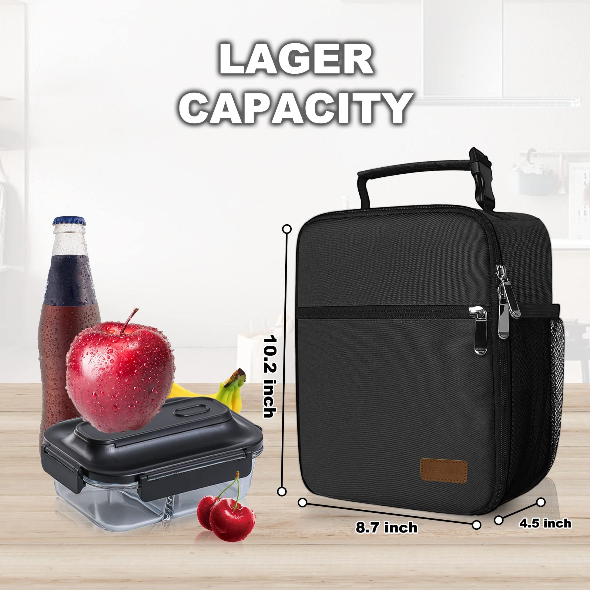Deosk Lunch Bag Reusable Small Lunch Box for Men Women Insulated Portable Lunchbox for adults Suitable for School Work Picnic (Black)