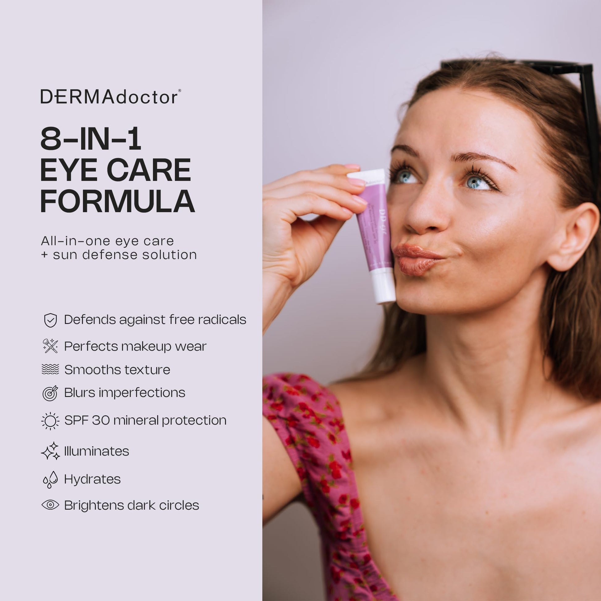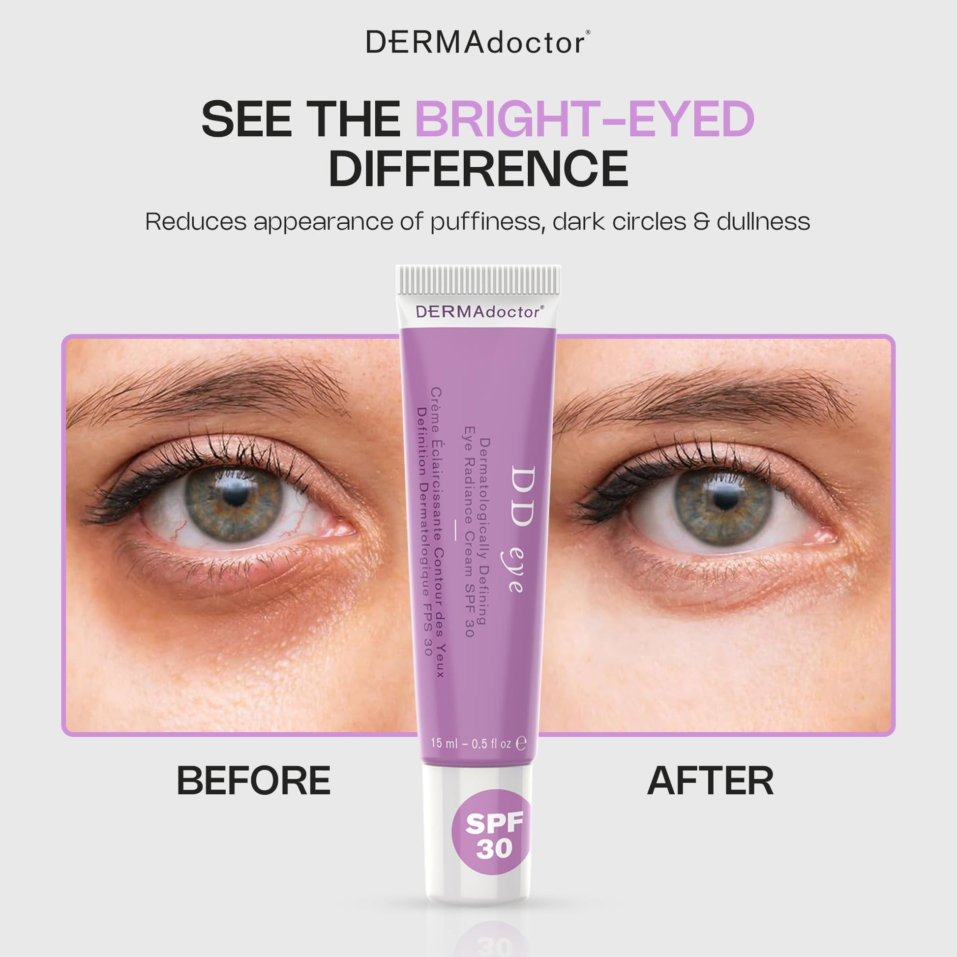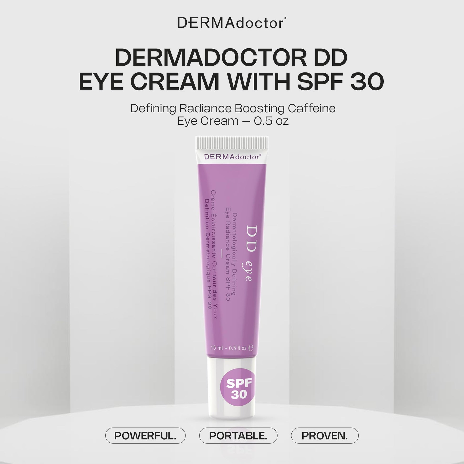 DERMAdoctor DD Caffeine Eye Cream for Dark Circles, Illuminator, Anti Aging, Eye Cream with SPF 30 for Puffiness, Bags Under Eyes, Defining Radiance Under Eyes Cream; Dermatologist Formulated - 0.5 oz