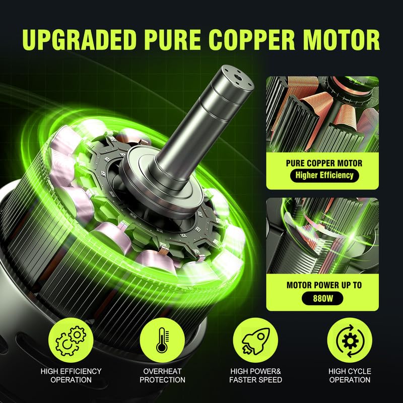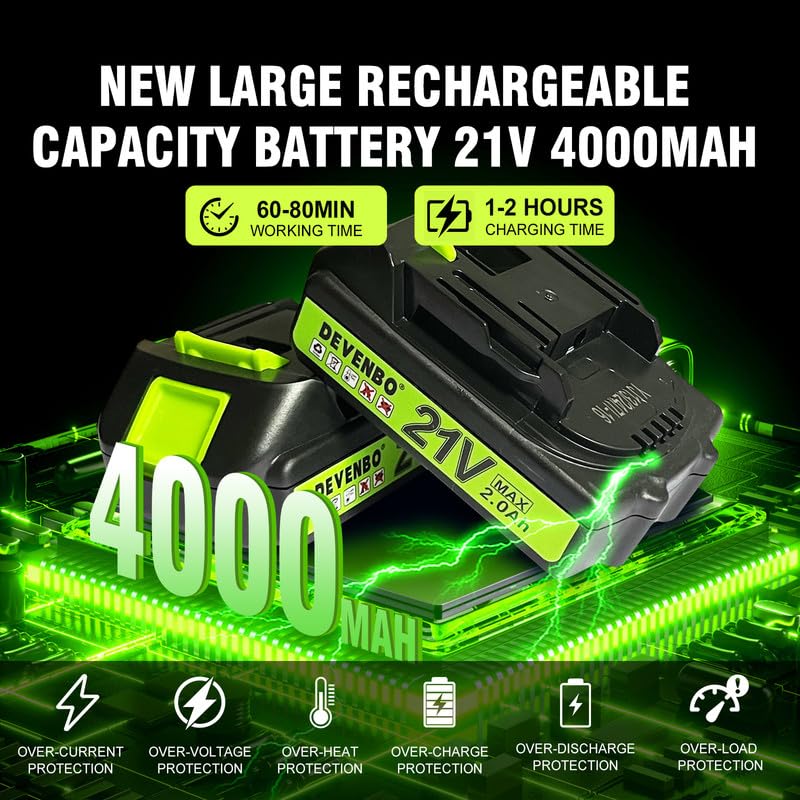 - 【Efficient cutting】The use of pure copper motor, more power, faster speed, fast heat dissipation, 21v removable rechargeable battery, longer working time, high wear-resistant chain through deep quenching process, to achieve fast and efficient cutting