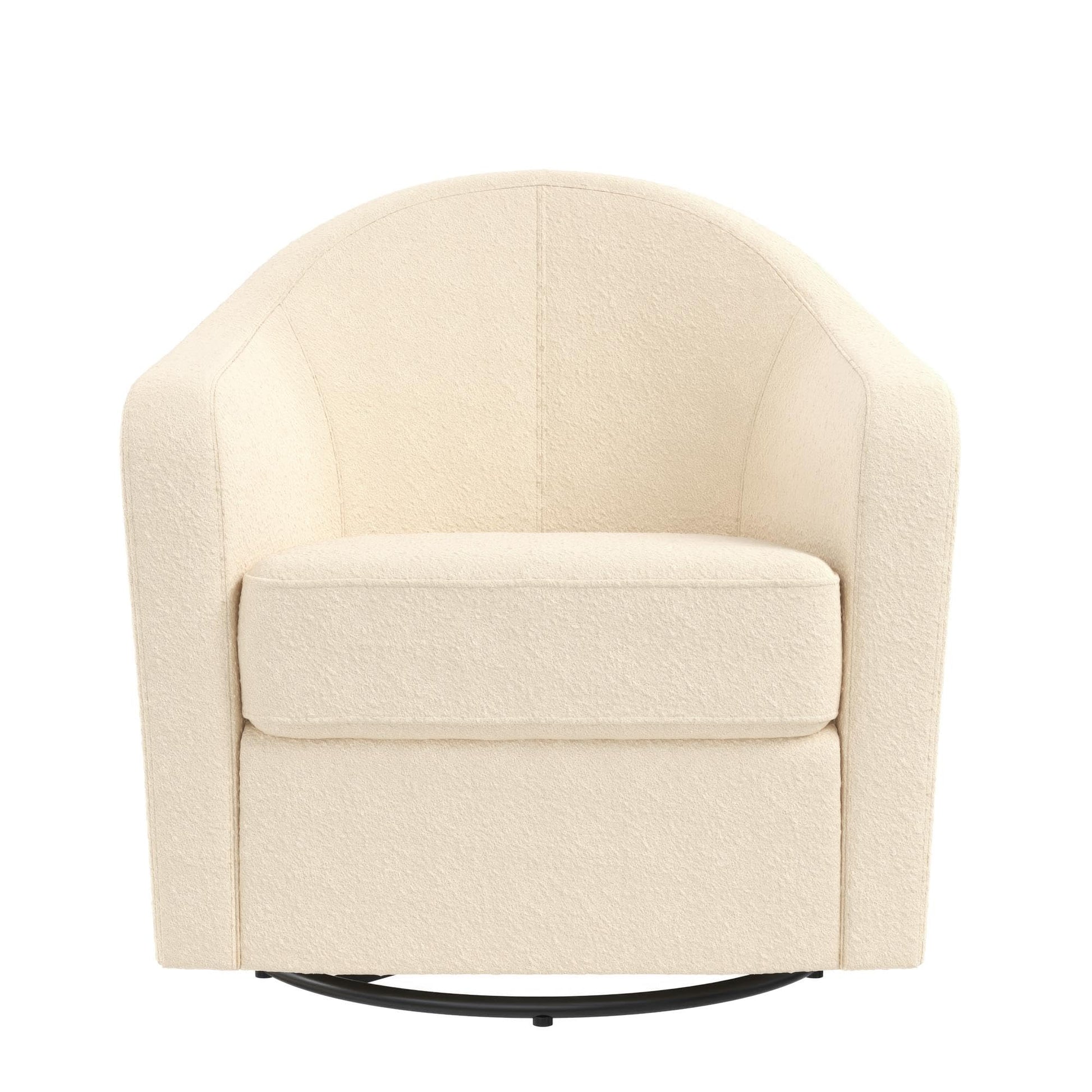 - SNUG & COZY DESIGN: Draped in fleecy-soft boucle fabric and delivering comfy 360-degree swivel seating with a modern low profile and a sloped curve barrel back, our accent chair belongs in any nursery, kids or teen bedroom, living room, and office