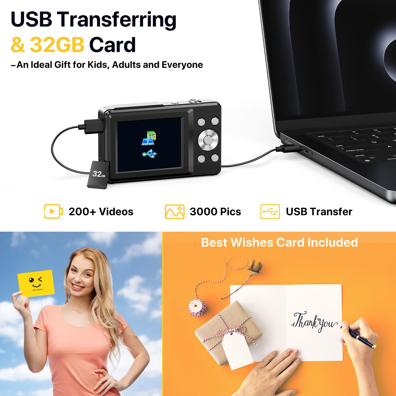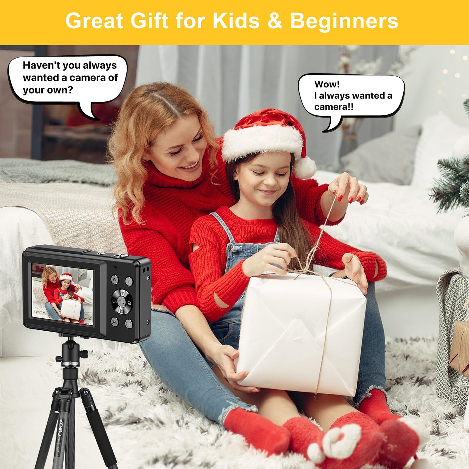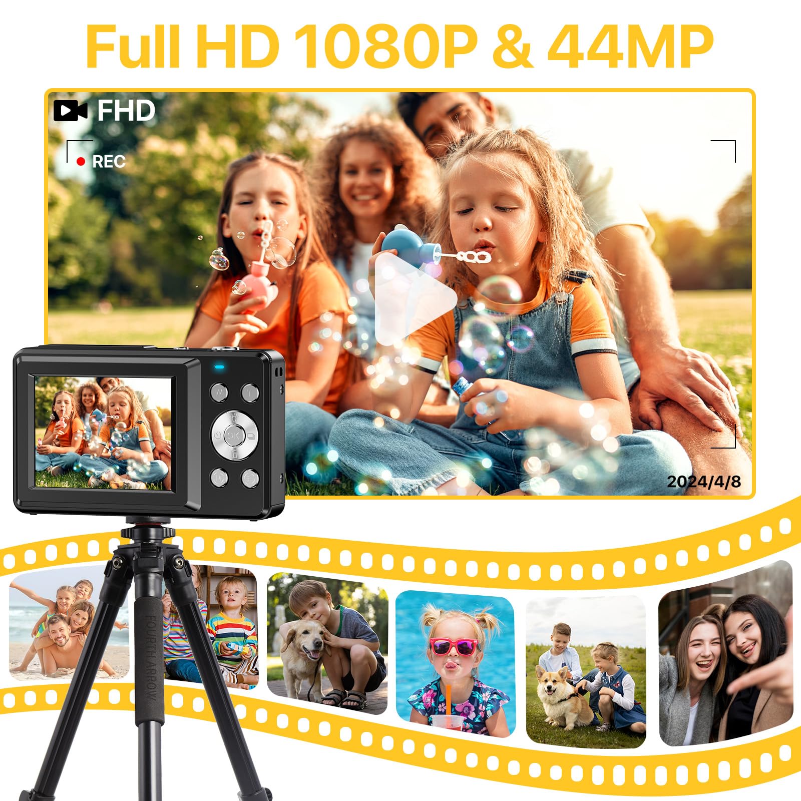 - 2024 UPGRADED DIGITAL CAMERA WITH BEST WISHES CARD : This camera uses the latest & advanced CMOS chip, helping you take & record the most exciting moments in 44 MP quality images & FHD 1080P quality videos,there is also a built-in fill light to help you take high quality pictures even in low light&dark settings.This camera is an ideal thing for kids, adults, and everyone. Includes a fun wishes card that is perfect for all celebrations including birthdays, Christmas, and any occasion!