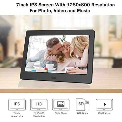 Digital Photo Frame with IPS Screen - Digital Picture Frame with 1080P Video, Music, Photo, Auto Rotate, Slide Show, Remote Control, Calendar, Time,1280x800, 16:9 (7 Inch Black)