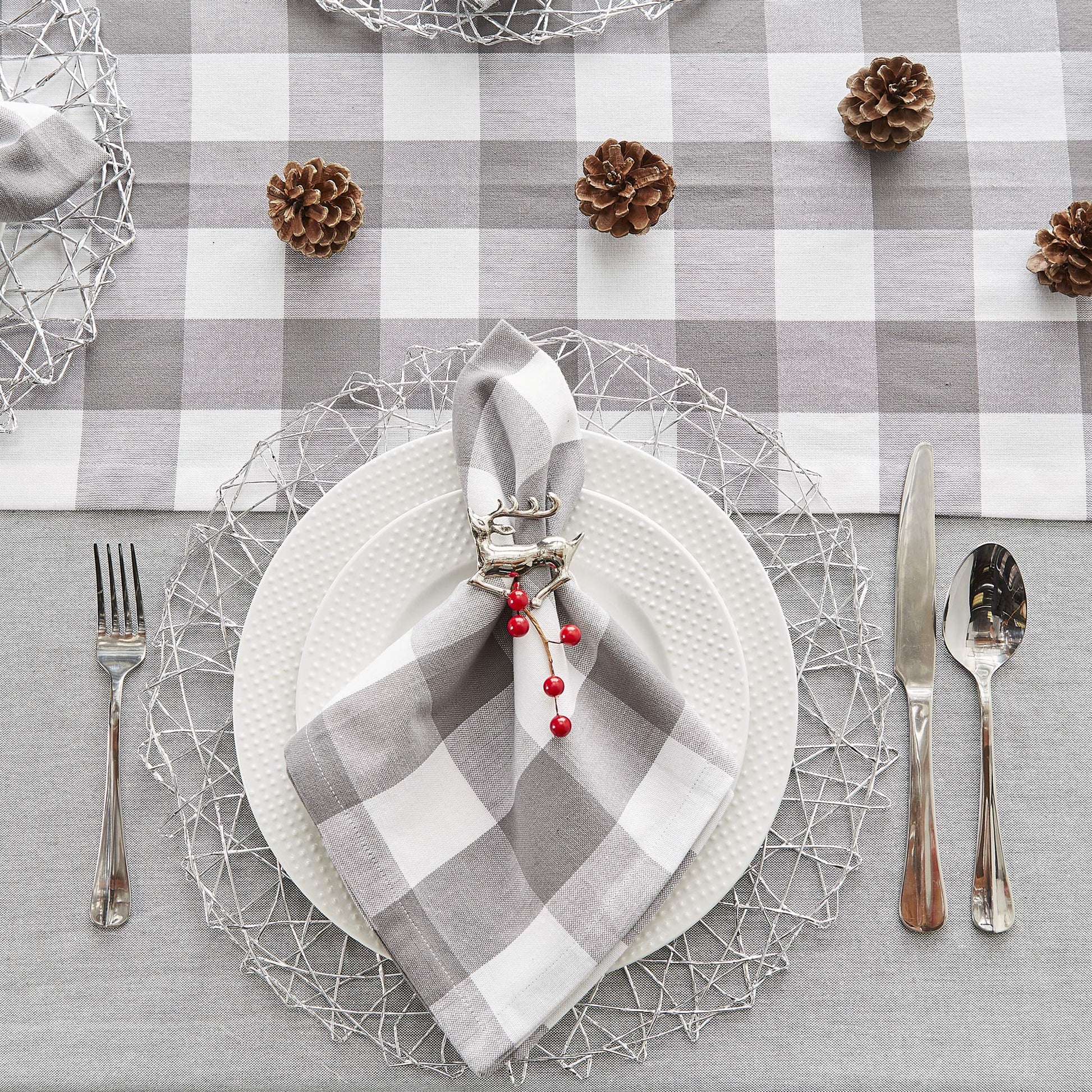 - ADDS A FINISHING TOUCH: Our colorfast wrinkle resistant gray buffalo check cotton napkins allow your dinnerware to stand out, make a statement; Our buffalo check table accessories come in a variety of colors and sizes, allowing you to mix and match