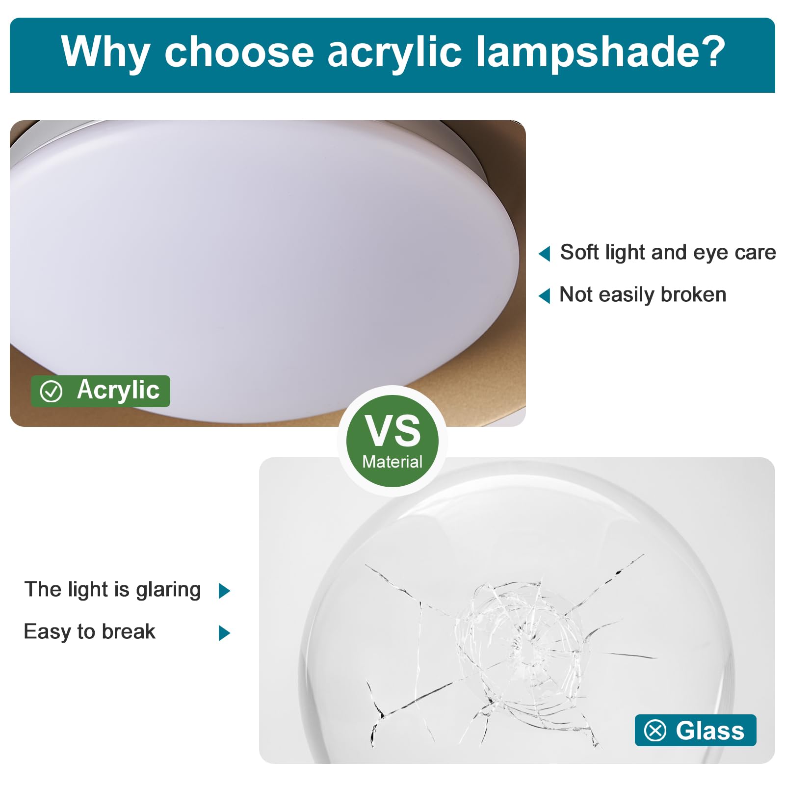 - Size and Material: The black and gold ceiling lamp diameter is 11.81 in X 5.5 in. The farmhouse ceiling light color temperature is selectable. Make with metal and acrylic lampshade. It is a good choice for your home