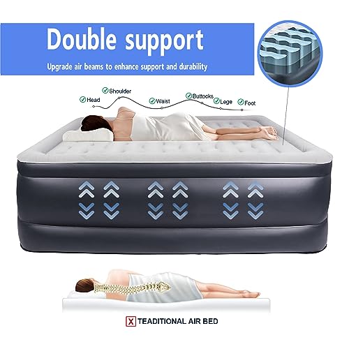- ✅Double Support: Air mattress features an internal 3.0 wave-shaped air wall beam to create superior support head-to-toe,providing more comfortable support compared to traditional air coils. This design not only ensures enhanced comfort but also effectively prevents the mattress from deformation, thereby extending its lifespan.Just like in a real bed, eliminating your fatigue.