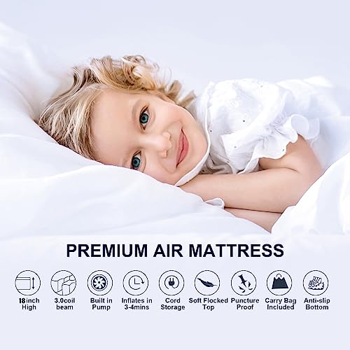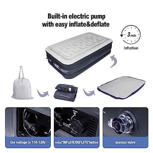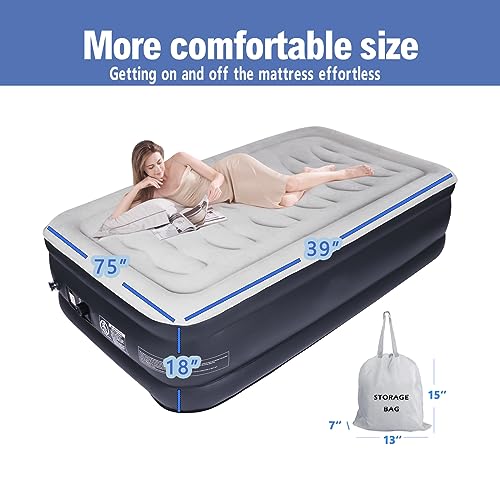DINBooonLUX Air Mattress with Built-in Pump Twin,Double Height Blow Up Airbed for Home,Guests&Camping,Luxury and Durable Comfortable Support Inflatable Mattress with Carry Bag,18 Inch