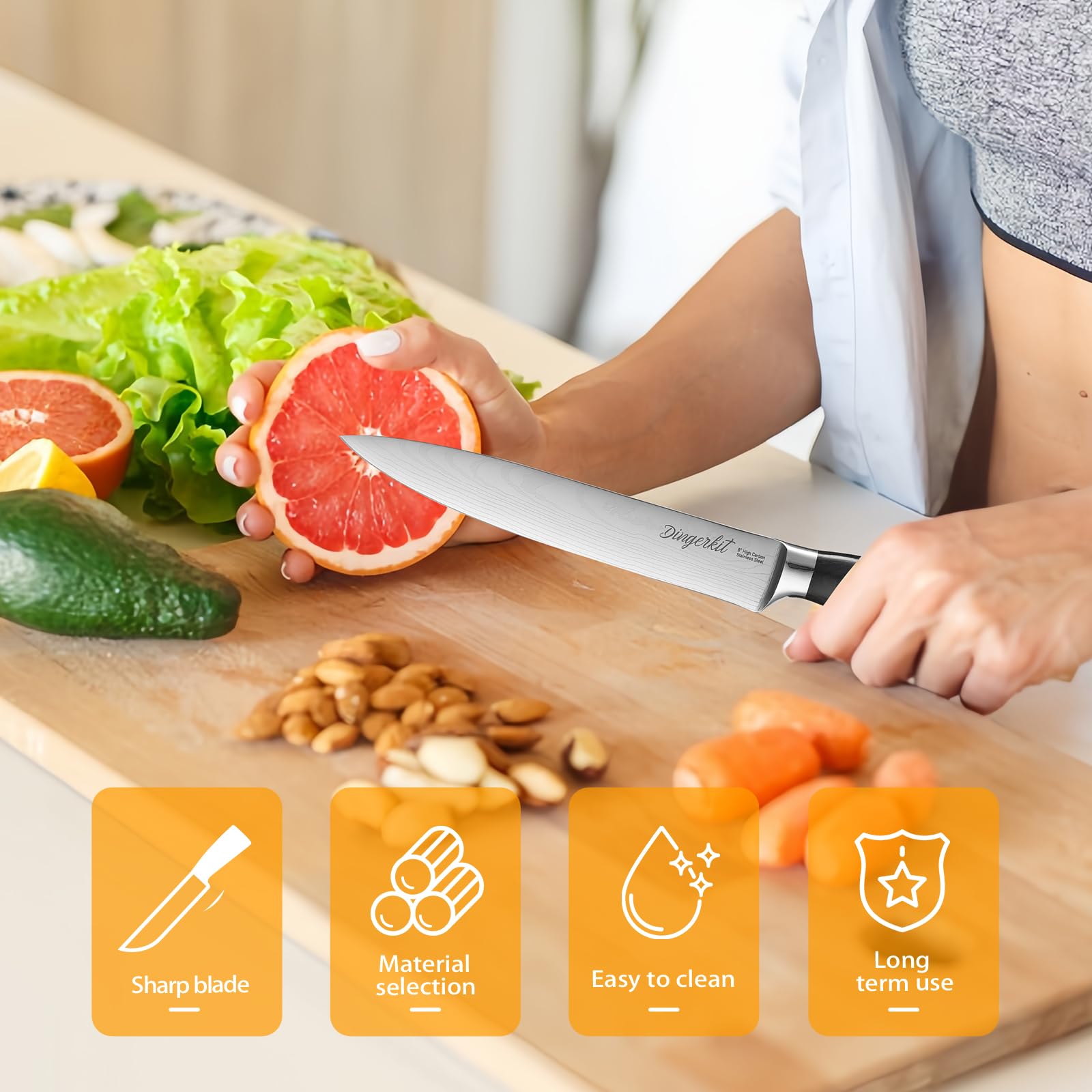 - โ โ ใ๐๐ซ๐๐ฆ๐ข๐ฎ๐ฆ ๐๐ฅ๐ข๐๐ข๐ง๐ ๐๐ง๐ข๐๐ใ Dingerkit 8" carving knife used of Kitchen basics as meat knife for meat carving knife, meat slicing knife, bbq knife for ham knife, pumpkin carving knife, watermelon knife, paring knives, fruit knife, vegetable knife etc, the 8" carving knife is versatile kitchen knife