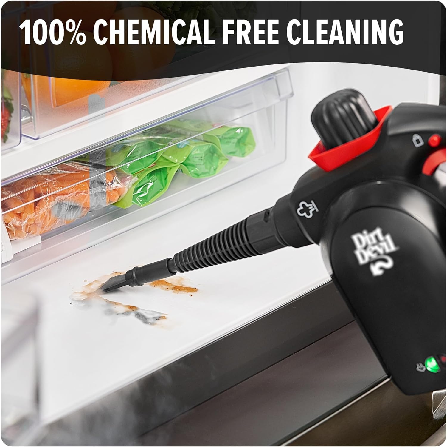 - HANDHELD STEAM CLEANER: The Dirt Devil 7-in-1 Handheld Steamer harnesses the natural power of steam to quickly tackle dirt or steam fabric for a chemical-free clean – from floors to kitchen surfaces, upholstery and more.