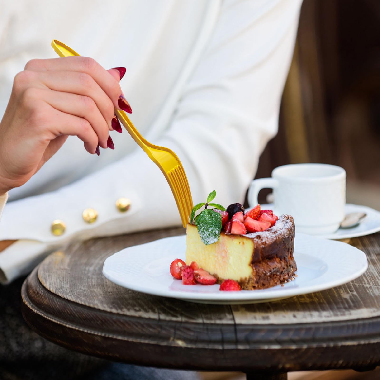 - Premium Gold Plastic Silverware - Our disposable heavy duty plastic forks' gold color is not created through polishing, it has the same sheen as metal knives and can be perfectly matched with our gold plastic knives and spoons.