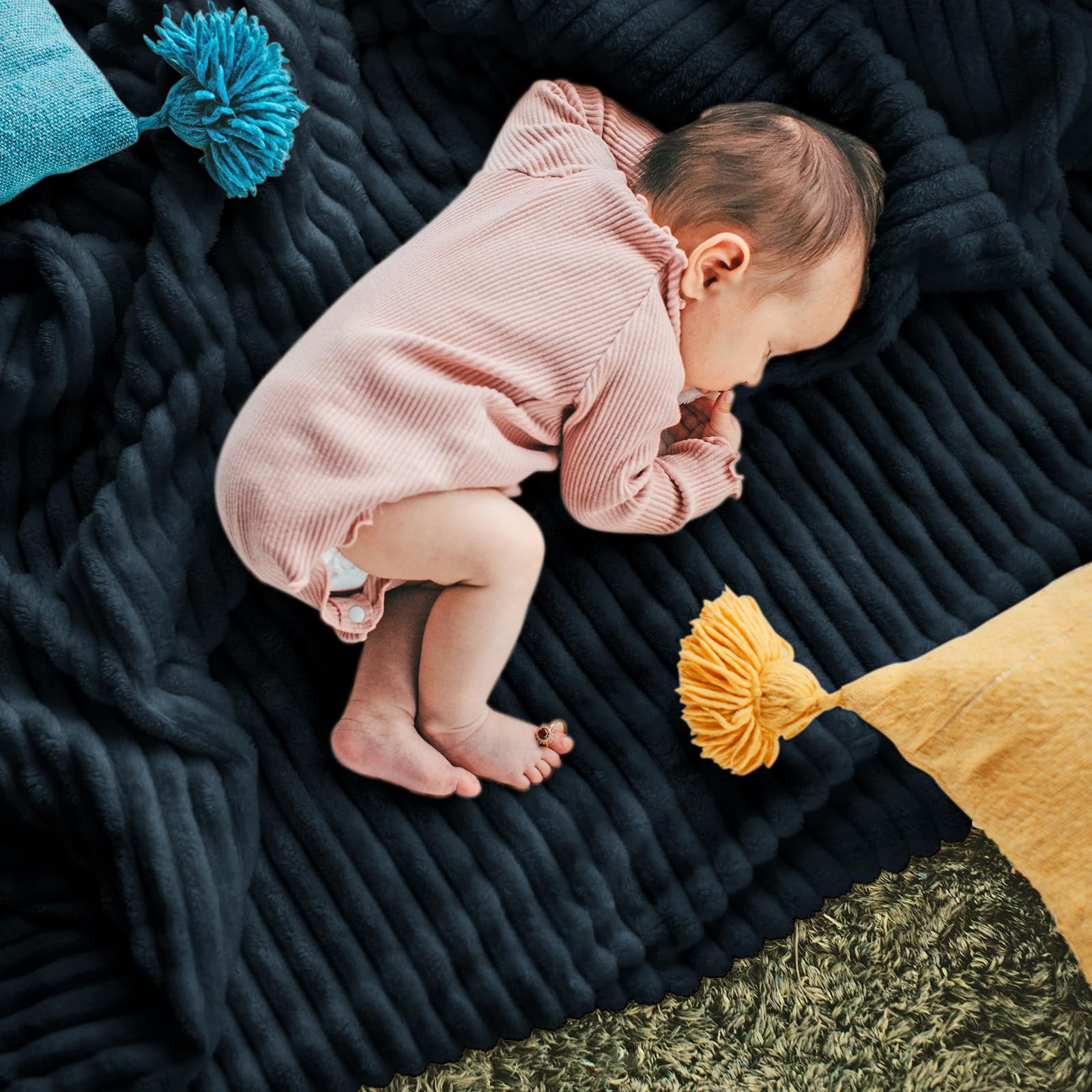 - 【Strip Design】- Flannel fabric blanket, different color and white stripe pattern with 3D touching offers you amazing senses of softness. The fabulous color revives this blanket with an elegant appearance to complement your room a chic feeling.