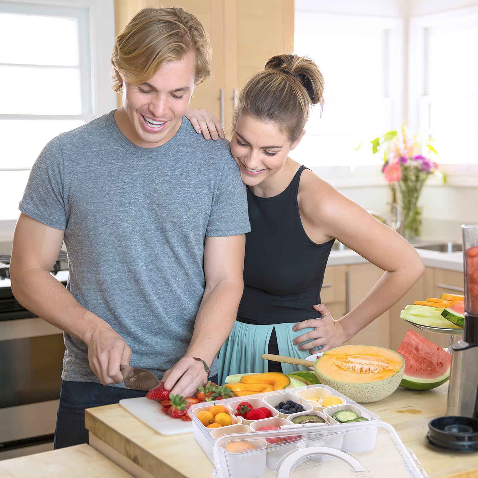 - Refrigerator-Safe and Warm Tips: Snack box can stand in temperature from -20° to 60°, which is freezer safe and can work as a refrigirator organizer for vegetables or fresh ingredients like garlic. This veggie tray box is NOT dishwasher safe or microwave safe. Please wash them by hands