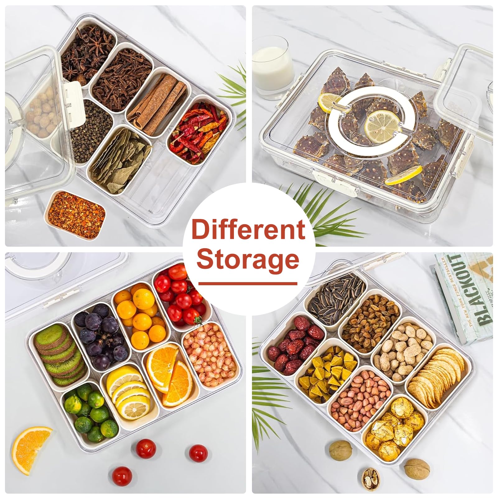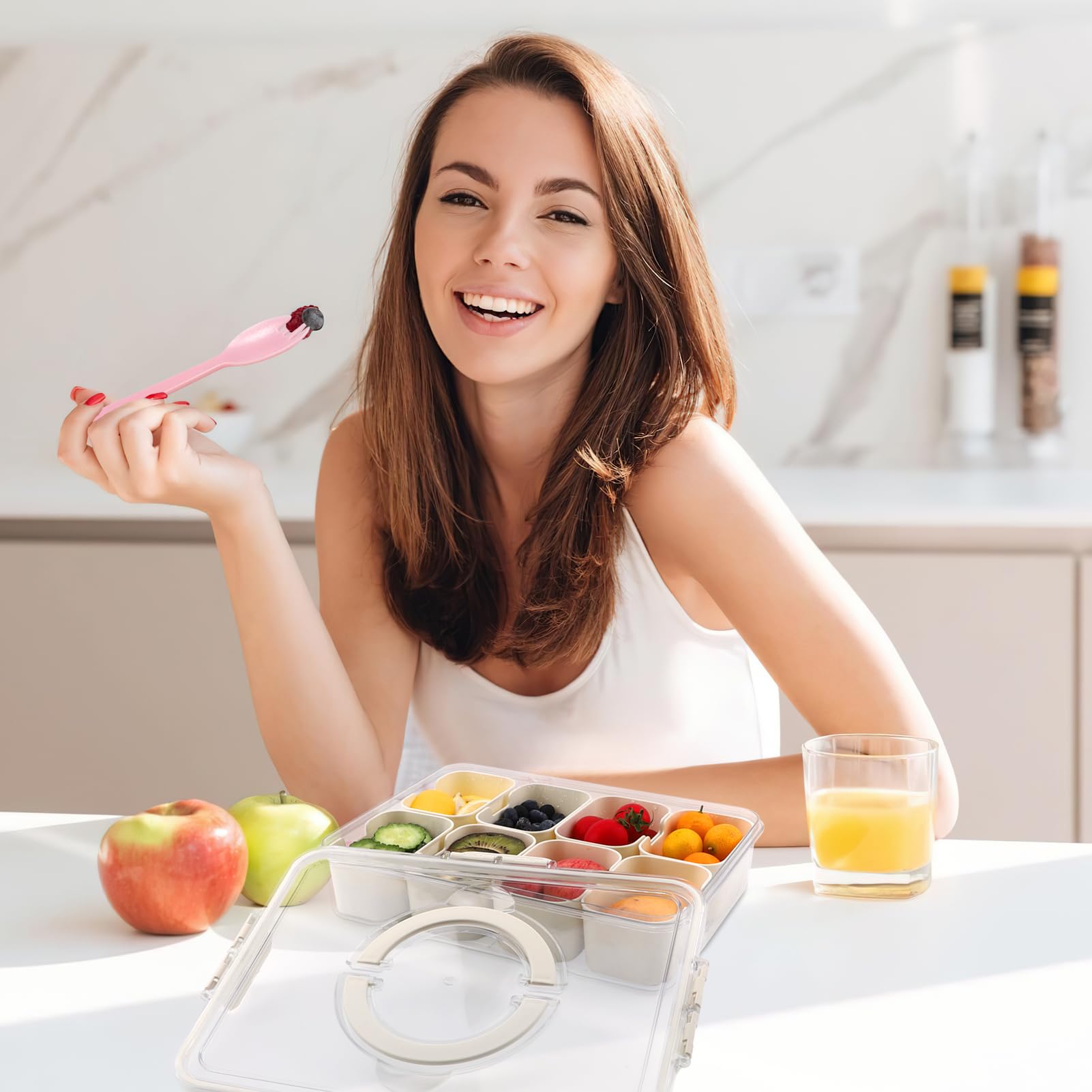 - Perfect and Versatile Design: Clean and hygienic with 16 compartments, divided serving tray with lid and handle is designed with multiple compartments, providing versatile organization for nuts, candy, fruits and more. The separate design makes snacks and dried fruits better categorized without mixing the flavors. Conveniently designed snack box container with lids for transportation and storage, perfect for serving snacks and organizing your favorite treats, the snack containers for adults is convenient to pick up what you need and meanwhile to prevent dust and keep clean