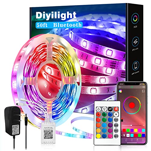 Diyilight Led Strip Lights 50 ft Smart Light Strips with App Control Remote, 5050 RGB Led Lights for Bedroom, Music Sync Color Changing Lights for Room Party