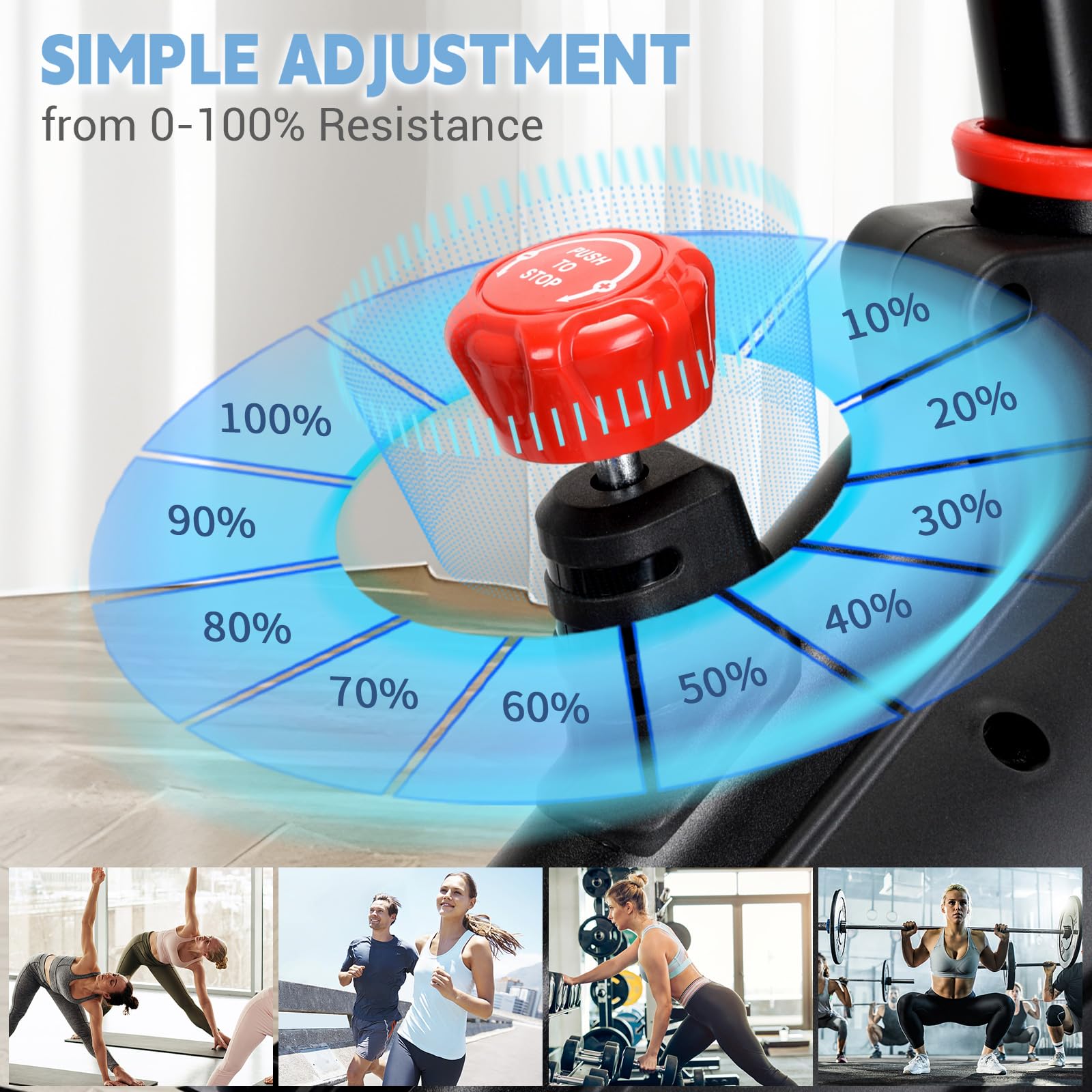 - [Quiet and Smooth] Magnet resistance to ensure the quiet cycling process for you. You don't have to worry about disturbing others. Compared with wool felt brake pads, our magnet resistance exercise bikes are more durable.