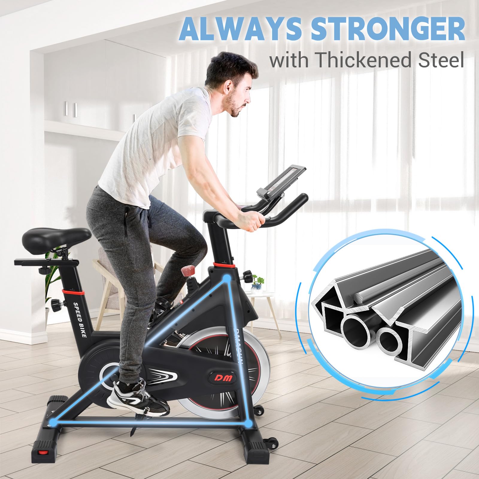 DMASUN Exercise Bike, Super Quiet Magnetic Resistance Stationary Bike, Indoor Cycling Bike with Comfortable Seat Cushion, Digital Display with Pulse,330LBs Capacity