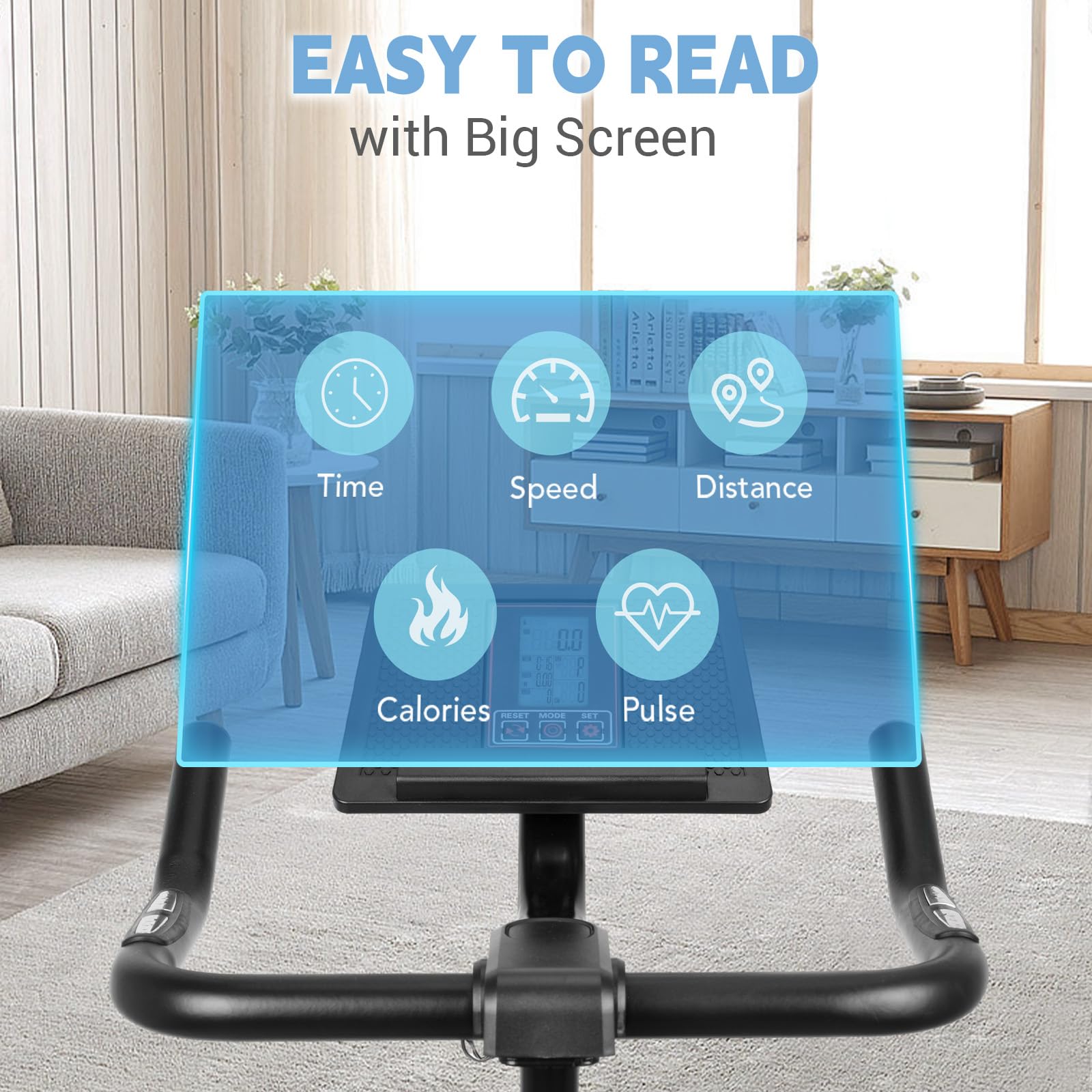- [Real -time Monitoring Sports Data] DMASUN stationary bike is equipped with a display, which can grasp your sports data in real time, including motion duration, motion distance, burning calories, mileage meters and pulse. Formulate your sports plan based on exercise data.