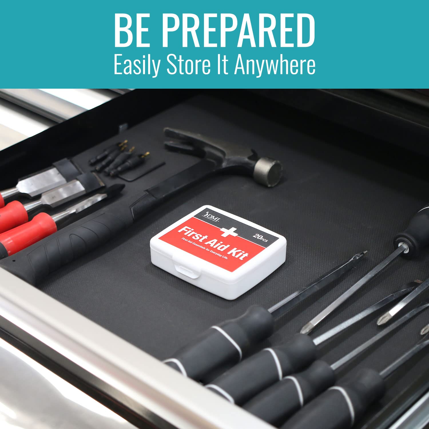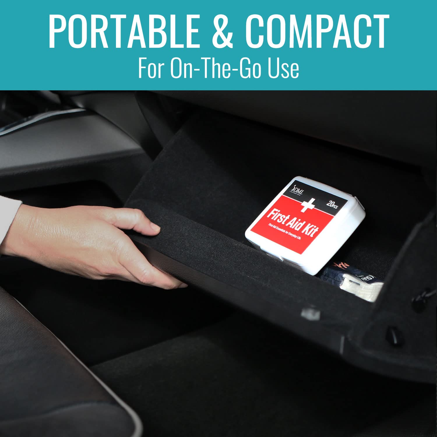 - The mini 20-piece first aid kit is incredibly portable and is perfect for your car, bookbag, carry-on luggage, desk drawer, handbag and more!