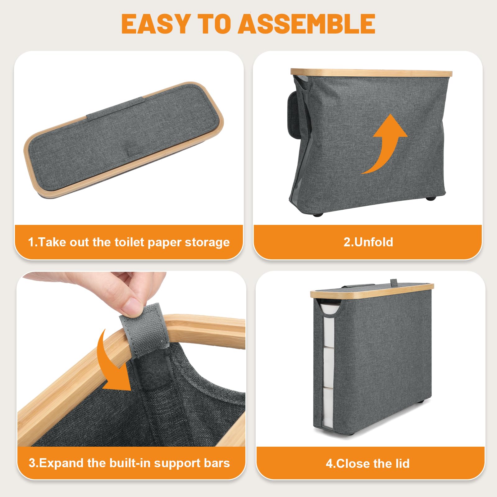 - 【Stylish Design】This toilet paper storage basket combines a beautiful bamboo frame with waterproof Oxford cloth, which is both durable and stylish. The lid design keeps the toilet paper inside clean, and the hollow handle design is easy to move.