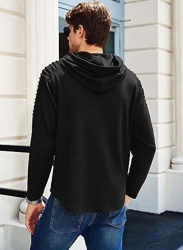 Dokotoo Men Mens Hoodies Lightweight Hoodie Sweatshirs Hipster Slim Fit Long Sleeve Hooded Drawstring Work Jacket Top Black Medium