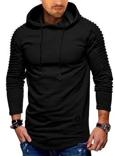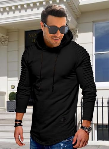 - Design: Men's muscle Hoodie, classic solid color, pleated raglan sleeves and adjustable drawstring hood design, simple and fashionable, comfortable fit, can show your figure well without restricting your movement.