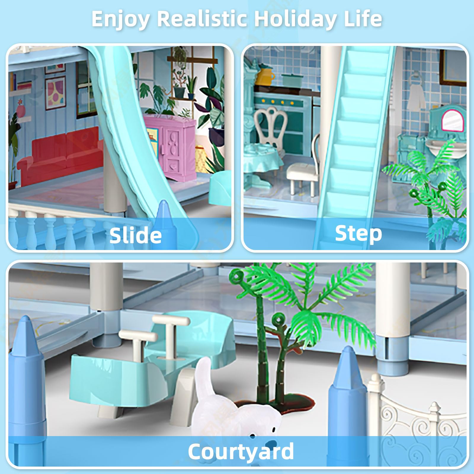 - 【Safe & Premium Material】: Our fancy dream house is made of BPA-free and non-toxic ABS plastic and child-friendly material, each part of this princess house is made to be smooth, round and burr-free for our little kids and easy to assemble.