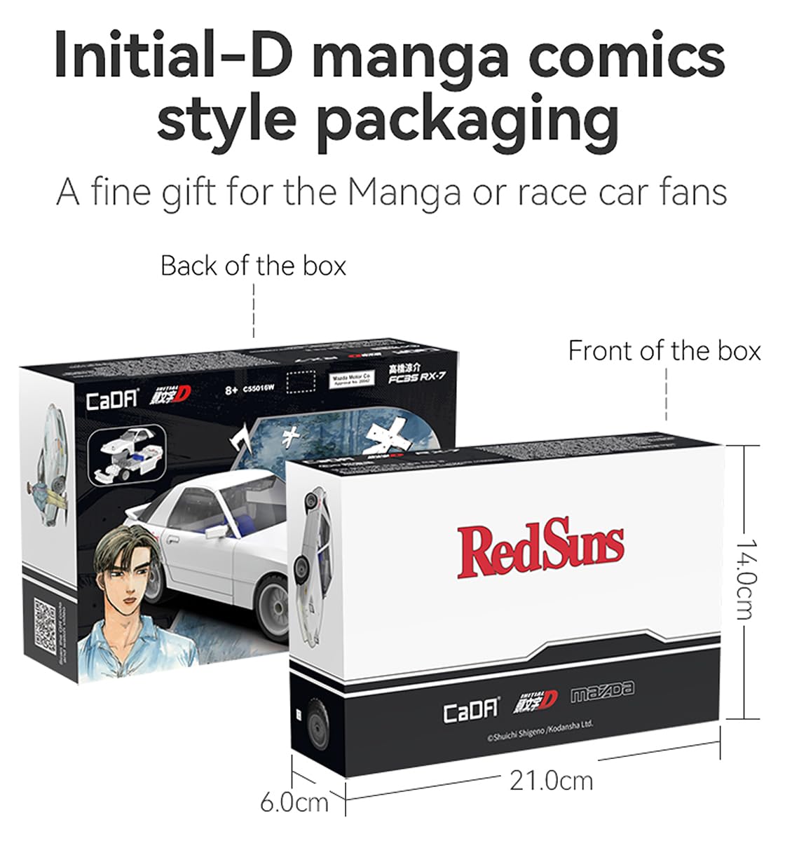 - COLLECTIBLE AND GIFT BUILDING SET – This detailed Ryosuke Takahashi’s Mazda RX-7 FC3S brick car model kit in original style packaging is a fine gift for the fans of the manga and racing car! Great suitable for decorations and commemorative collections. The result: a wonderful combination of the manga and brick building!