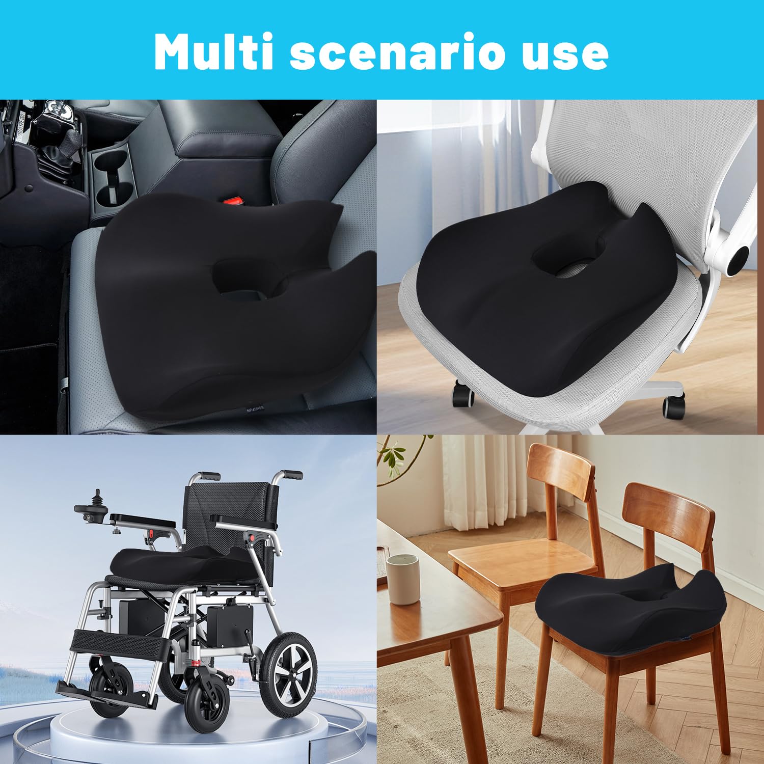 - ❥Ergonomic Design: The contoured shape promotes better posture and weight distribution, making it a versatile seat cushion for office chairs, car seats, wheelchairs, and travel, helping reduce pressure and discomfort.
