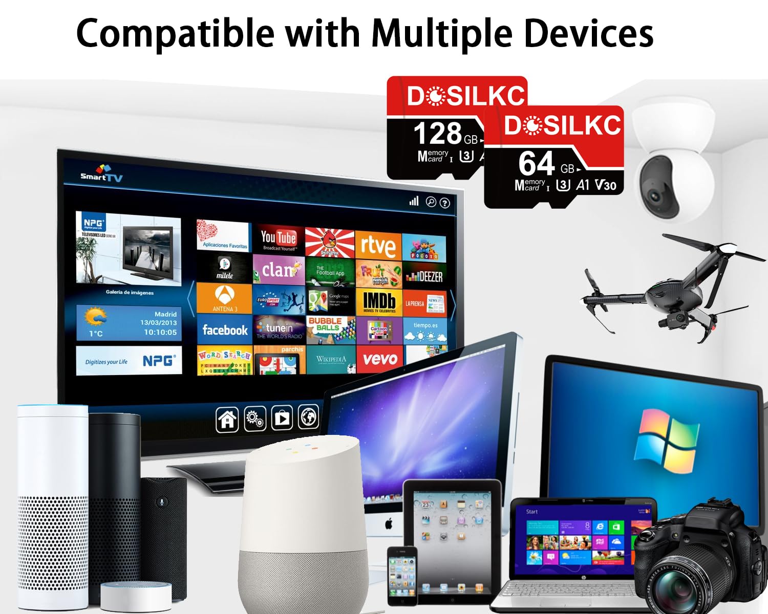 - High Compatibility: Dosilkc Micro TF Card compatibility with and for devices with for Micro SD card slots enabled host devices including smartphones, tablets, laptops, digital cameras, game consoles, drones, etc.