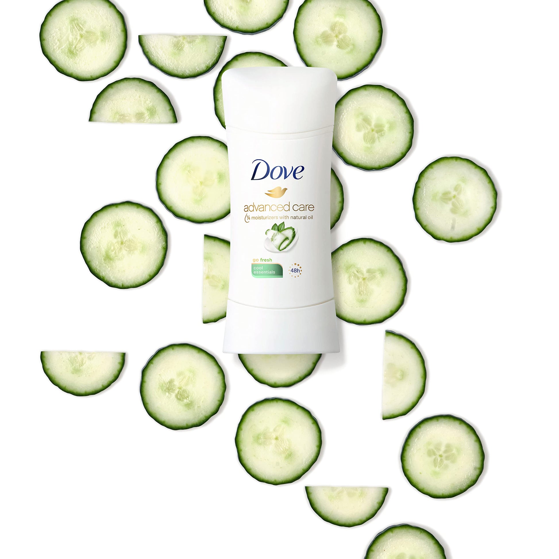 Details: Infused with the fresh fragrance of crisp cucumber and honeydew melon blended with green tea, Dove Advanced Care Cool Essentials Antiperspirant deodorant.Stick is perfect if you’re looking for a long-lasting, invigorating, and fresh scent. It's also a great choice if you're looking for a deodorant.for sensitive skin. With an alcohol-free formula that’s kind to skin, this deodorant.helps to relieve the irritation that shaving can cause. Dove antiperspirant deodorant. enriched with our signature 1/4 moisturizers with natural oil, cares for your delicate underarm skin – leaving your underarms.feeling healthy and protected. As much as it cares for your skin, this deodorant.for women doesn’t compromise on effective antiperspirant protection. Keeping you fresh, this gentle deodorant.protects from sweat and odor for up to 48 hours. For best results, apply this Dove antiperspirant deodorant.to dry skin after showering and enjoy fresh, comfortably dry skin from morning to night. Dove is certified cruelty-free by PETA because we believe that real beauty is cruelty-free. We’re on a mission to help women raise their self-esteem – because we believe beauty should be a source of confidence, not anxiety. Dove Antiperspirant deodorant. deliver effective underarm protection and are kind to skin, so women can be free of underarm inhibitions and live beautifully unselfconsciously.