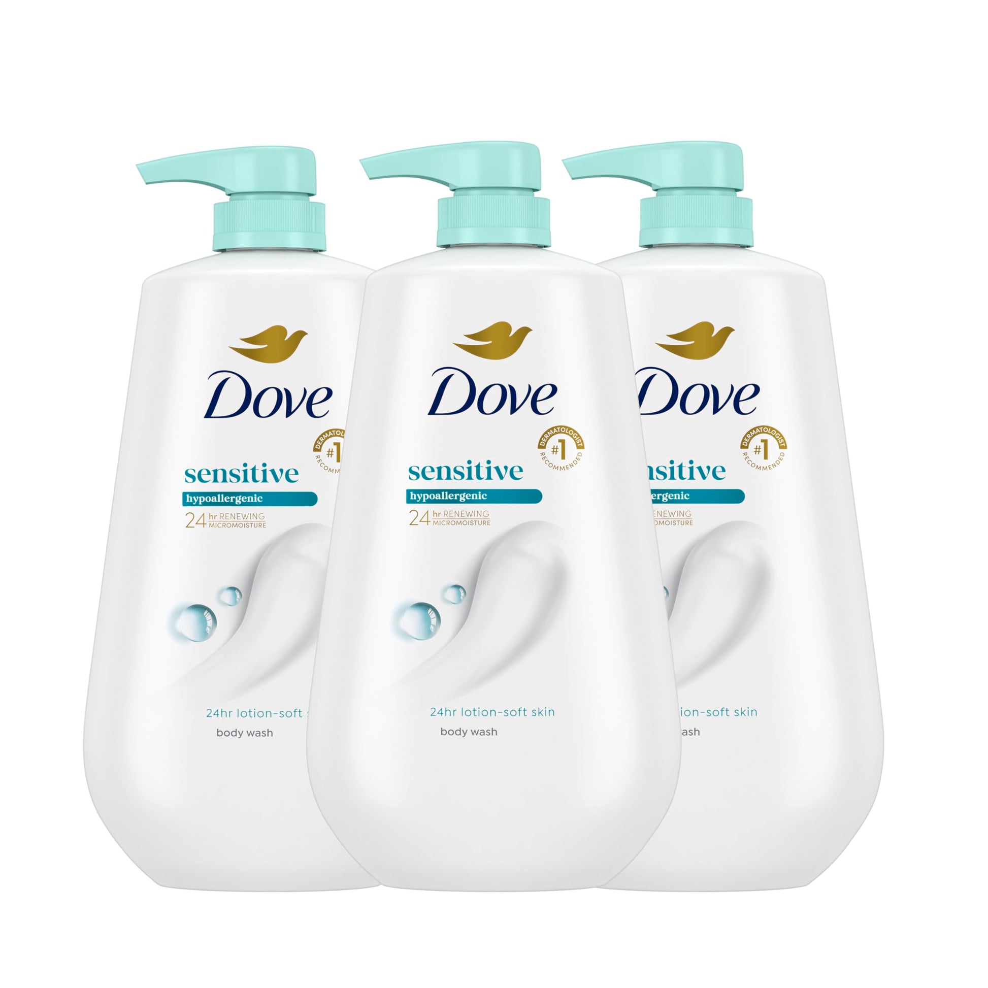 - HYPOALLERGENIC: Dove Sensitive Skin Body Wash has a hypoallergenic formula that hypes up hydration and soothes dryness without irritation