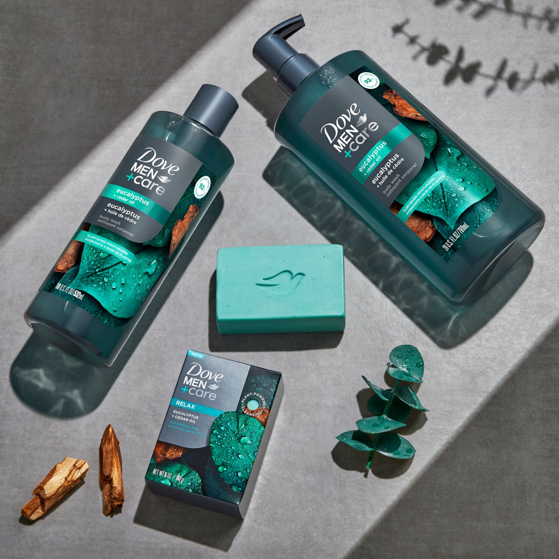 Details: Dove Men+Care Eucalyptus + Cedar Oil Body Wash for men hydrates your skin for a more relaxing and refreshing shower experience. Made with natural essential oils and plant-based cleansers and moisturizers, this bodywash works in harmony with your body to renourish the skin. You'll be treated to an relaxing and restoring experience as you indulge in your daily shower ritual. This plant-powered body wash is especially engineered for men, with an aromatic blend of natural essential oils of eucalyptus and cedar oil to revive the senses. Paraben and Sulfate-free, this bodywash not only provides care for your skin, but also for the planet. Following Dove's global commitment to more sustainable packaging, we've designed every bottle to be recyclable and made with 100% recyclable plastic. Our bodywash is also Peta-approved and Vegan. Globally, Dove does not test on animals. If you're looking for further proof, complete your grooming routine with the entire Dove Men + Care line inspired by Nature – available in Body wash and Cleansing Bar, all from the No.1 Dermatologist Recommended Brand. *92% of our formula is naturally derived, meaning its ingredients are unchanged from nature or after going through processing maintains more than 50% of its original content. This includes water and ingredients from plant, mineral and fermentation sources. We consider our bodywash to be plant powered because our cleansing and moisturizing ingredients are naturally derived, but all start from a plant source.