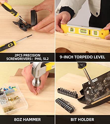 - 【WIDELY USED】It is perfect for homeowners, handymen, construction workers, mechanics. Tool set for men women college students kids, great gift idea.