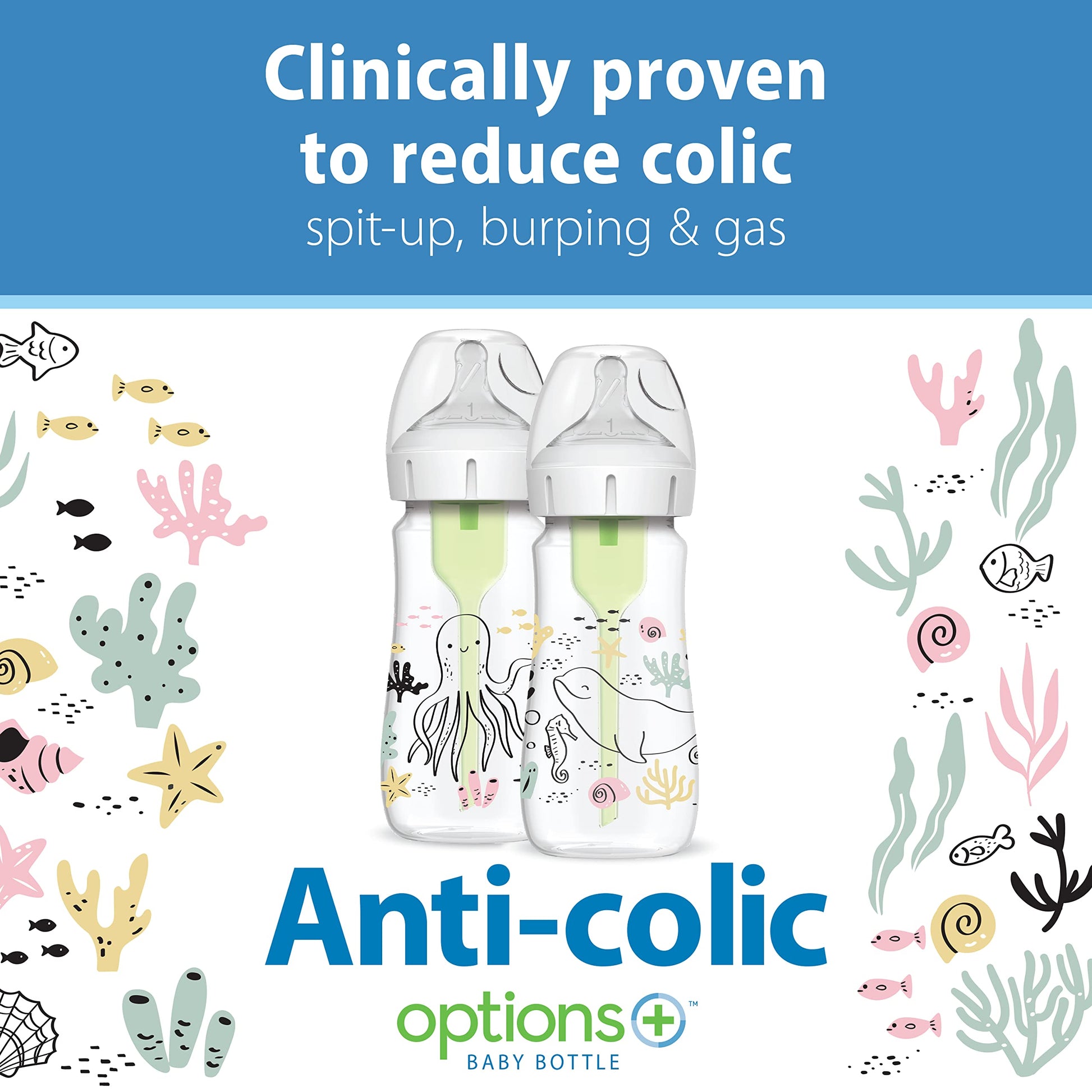 - ANTI-COLIC BABY BOTTLE. Anti-Colic internal vent system is clinically proven to reduce colic. Decreases spit-up, burping and gas.