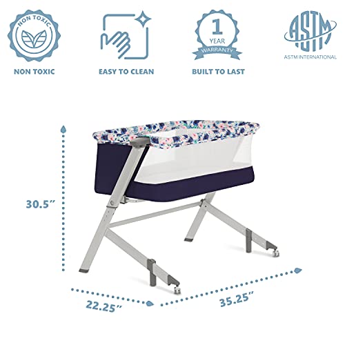 Details: Bring the freshness of spring to your little one’s nap-time, every day. The Dream On Me Flora Bassinet is the ultimate modern bassinet for a co-sharing lifestyle, ensuring mobility and safety. This JPMA & ASTM certified bassinet is designed to enable easy bedside breastfeeding and reassurance for your baby during restless nights. With an easy feature that allow the legs to fold inwards and adjustable height settings, you can keep your baby as close as possible to your mattress. Packed with front-leg wheels and breathable mesh sides, it allows for mobility to keep an eye on your baby as you move about your day. What’s more, compact in design and aesthetic in style, the Flora Bassinet with its floral detailing, comes in 5 unique finishes - Storm Grey, Moroccan White, Black and White, Floral Bloom and Confetti Blue! It’s convenient with easy, tool-free assembly & a portable carry bag. The product is recommended for babies weighing up to 25 lbs. / till 6 months of age, or till your little one shows signs of pushing up to hands & knees.