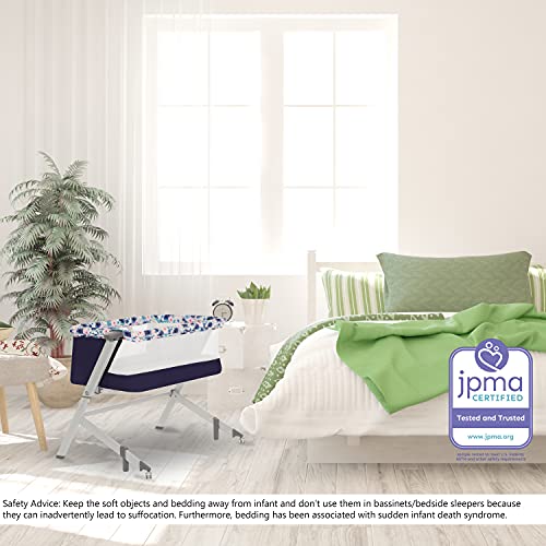 - SAFETY FIRST, ALWAYS: The Flora Bassinet is a JPMA & ASTM certified bassinet that meets all safety standards. As per regulations, it also comes with a 1-inch mattress pad (34.5” L x 20.5” W x 1” H in inches).