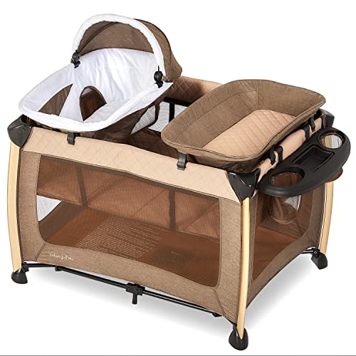 - CHANGING-TIME PARTNER: The playard boasts of a detachable changer that comes with a soft; waterproof PU leather fabric pad for easy cleaning.