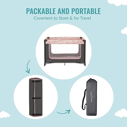 Dream On Me Zodiak Portable Playard in Grey and Pink, Lightweight, Packable and Easy Setup Baby Playard, Breathable Mesh Sides and Soft Fabric - Comes with a Removable Padded Mat