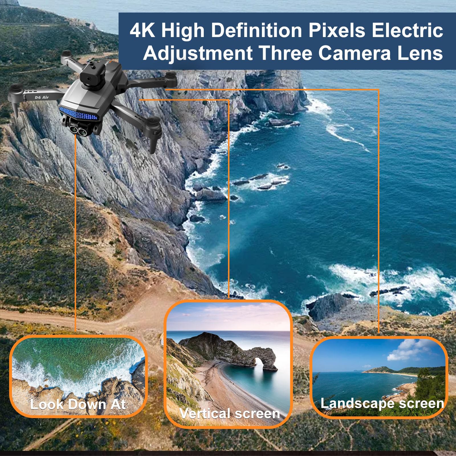 - 【90° Adjustable 4K Ultra HD Camera】This drone is equipped with a high-definition 4K camera, capturing stunning photos and videos with high quality and frame rates. The 120° wide-angle lens and 90° adjustable provide a broader and clearer field of view.Drone supports WIFI FPV transmission for smooth HD live-streaming, capturing unforgettable moments in the sky and providing you with a more exciting flying experience of drone.
