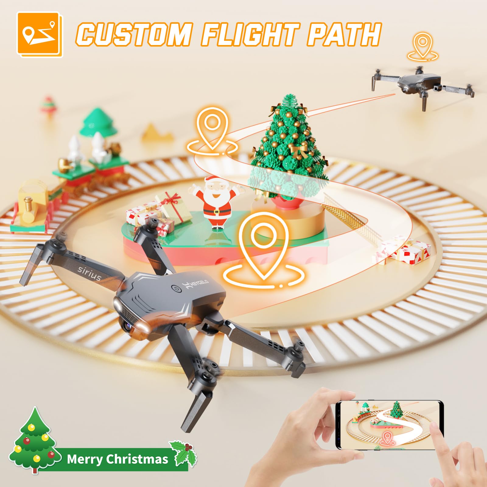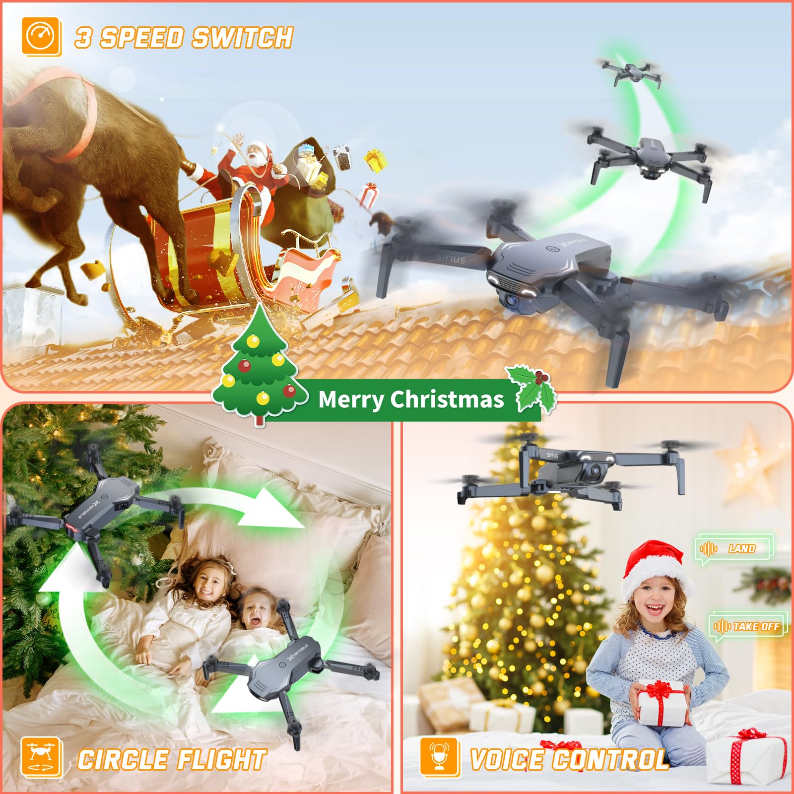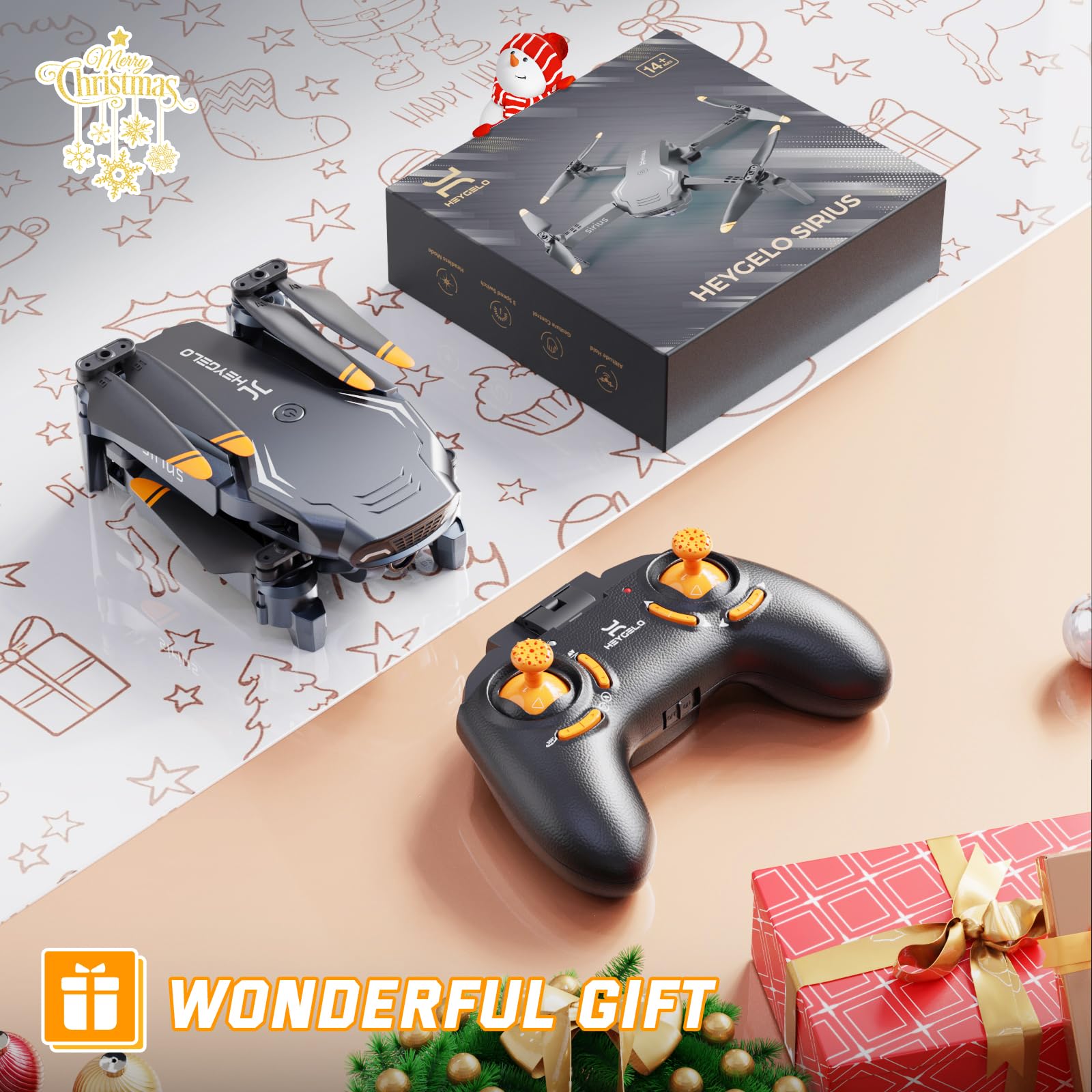 - Drone with 1080P HD Adjustable Camera & APP Control: Capture life from new heights with the drone featuring a 1080P HD adjustable camera. Control it through the "Heygelo Sirius" app, and enjoy real-time FPV streaming for stunning aerial views and easy social media sharing
