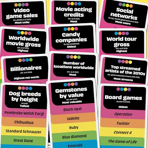 - 120 HILARIOUS AND UNEXPECTED CARDS: This game for teens and adults levels the playing field with accessible trivia in conversation-sparking categories, from Modern Foods to Highest Paid Actors