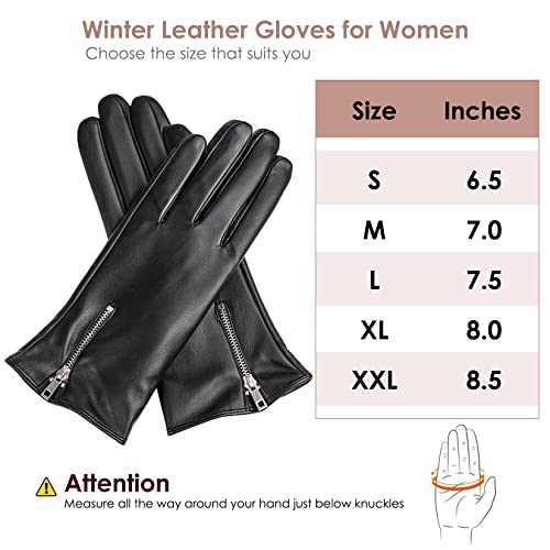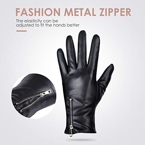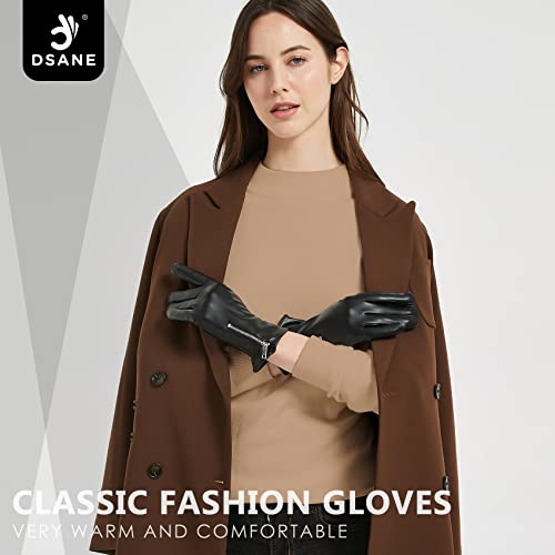 Dsane Winter Leather Gloves for Women, Touchscreen Texting Warm Driving Gloves (Black, M)