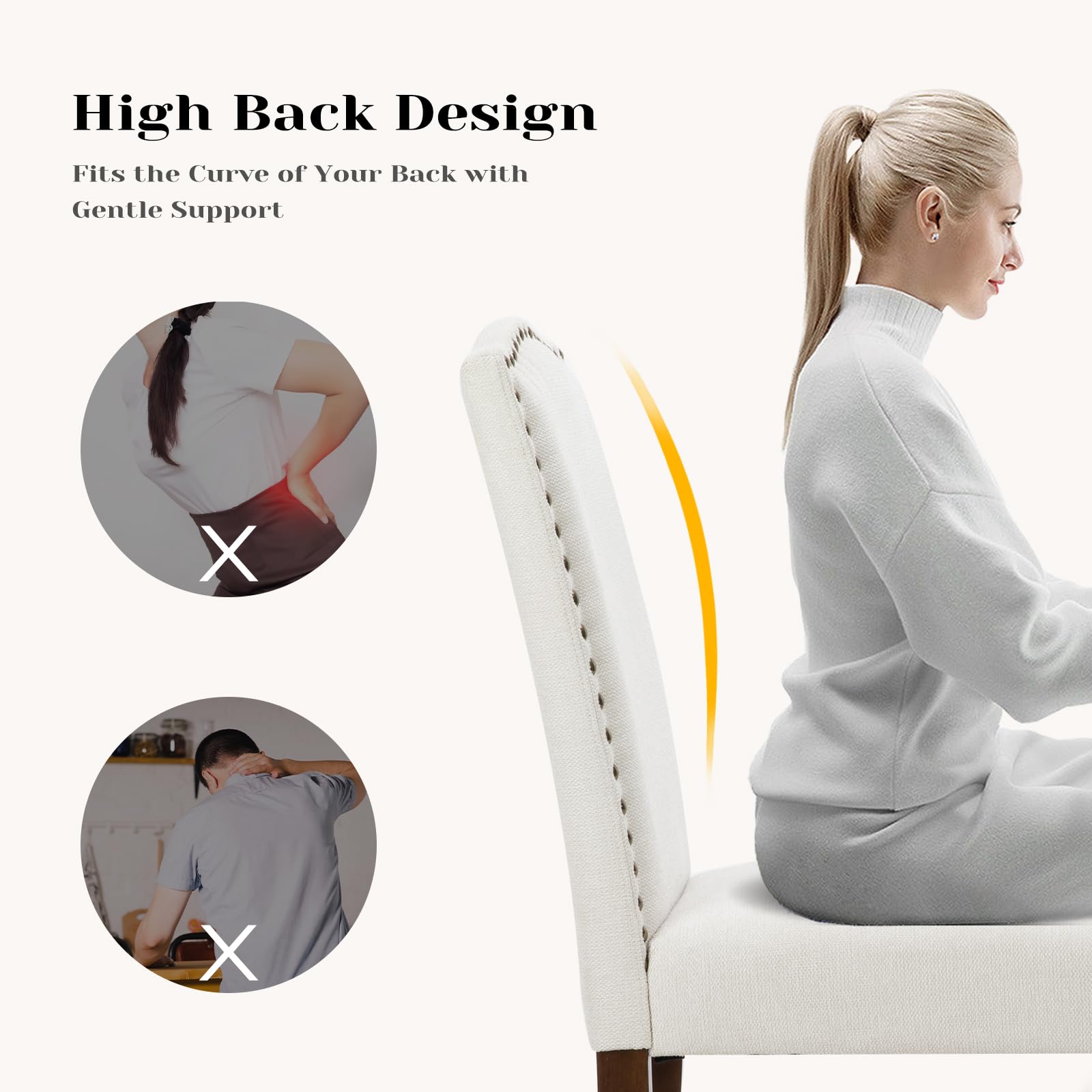 - 【Upgraded Comfort】Equipped with high elasticity and breathable linen fabric, the upholstered dining chair sets are easy to clean. The thickened sponge along with the double elastic structure design gives you a peculiar sitting experience. The high backrest is dedicated to strong back support.