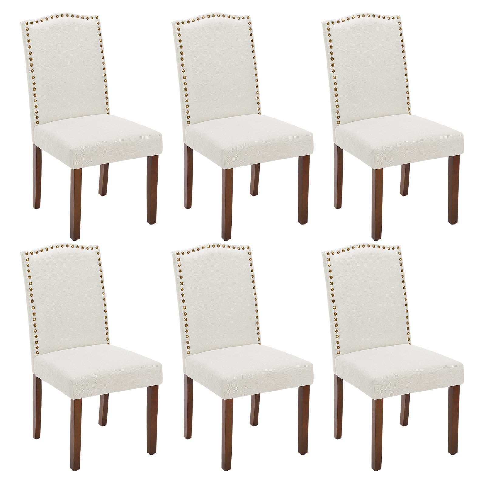 DUMOS Dining Chairs Set of 6, Fabric Dining Room Chairs, Upholstered Parsons Chairs with Nailhead Trim and Wood Legs, Kitchen Side Chair for Living Room,Bedroom, Kitchen, Beige