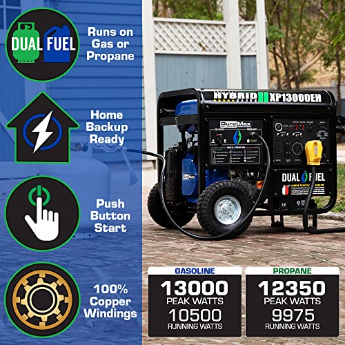 DuroMax XP13000EH Dual Fuel Portable Generator 13000 Watt Gas or Propane Powered Electric Start-Home Back Up, Blue/Gray