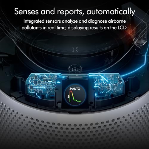 • Night mode monitors and purifies using the quietest settings, with a dimmed display.