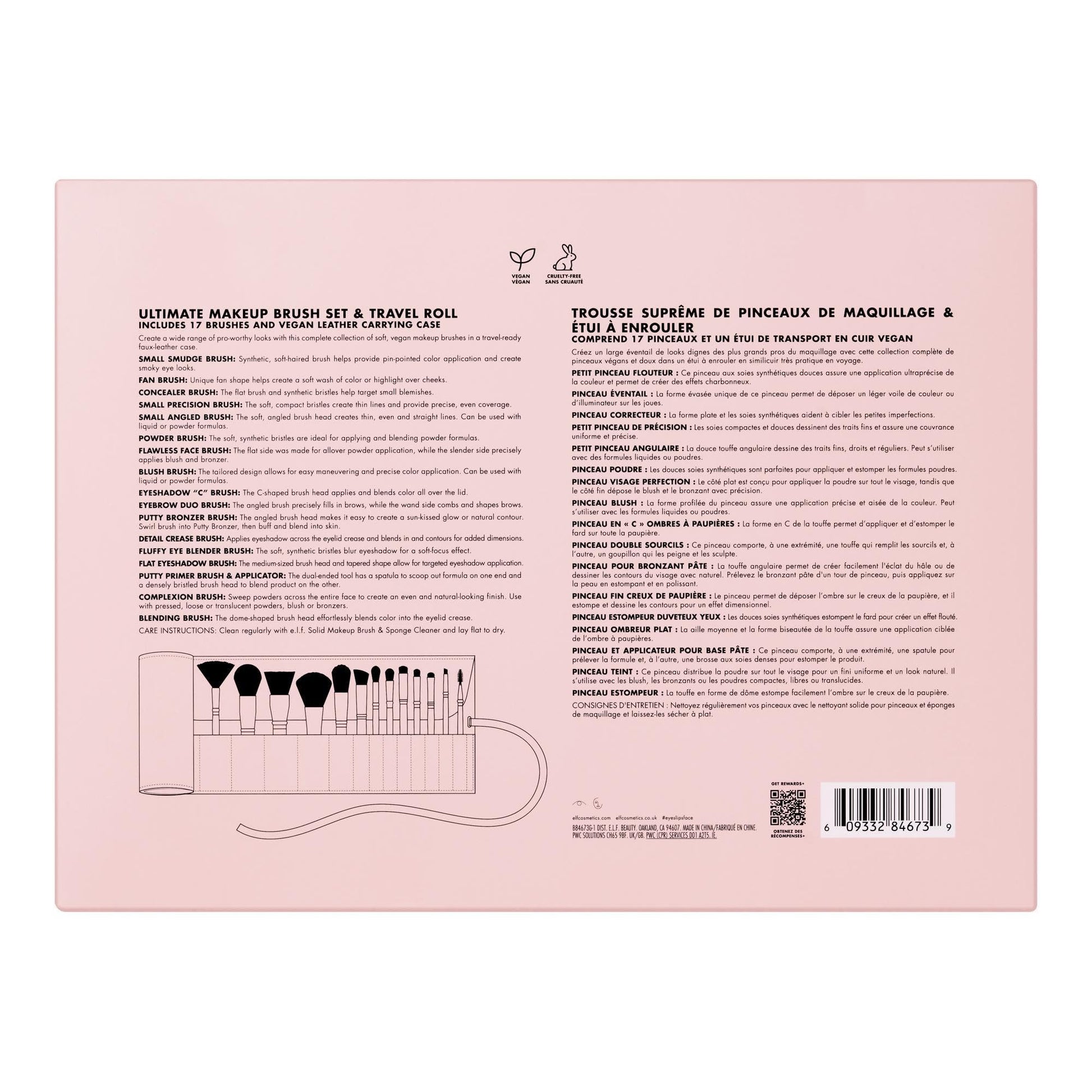 Details: Get the tools you need to create makeup looks from uber-minimalist to wild-as-e.l.f. and everything in between, with our 17-Piece Ultimate Makeup Brush Set & Travel Roll. This high quality full brush set has got what you need to apply every step of your makeup, from primer to setting powder to complexion and even eyes. Includes some of our most iconic brushes to help you scoop, buff, blend, and smudge your way to a wide range of gorgeous looks. It’s the perfect set when your makeup brush travel case needs an overhaul.