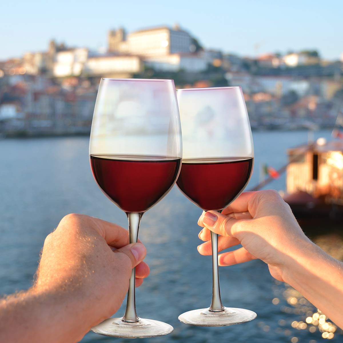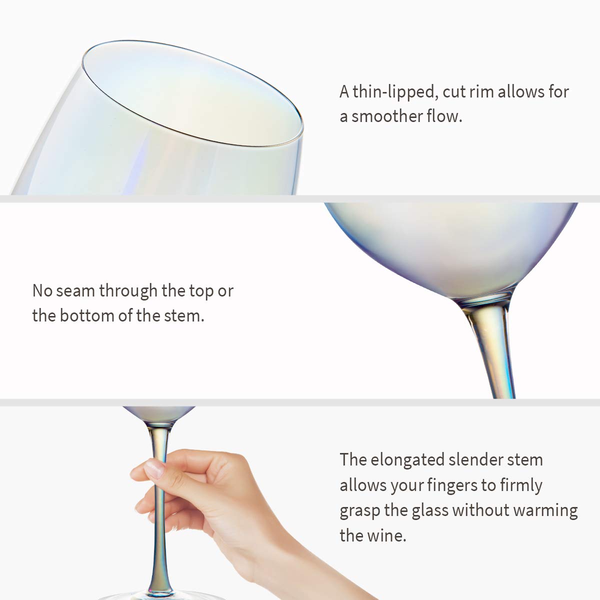 E-liu Handblown Wine Glasses, 17 Ounce Lead·Free Crystal Long Stemmed Glassware, All-Purpose Wine Glass for Red or White Wine, Birthday, Anniversary or Wedding Gifts, Set of 4, Iridescent